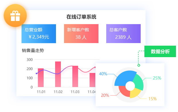 自定義搭建應用儀表盤,銷售額、會員人數等核心指標集中展現;